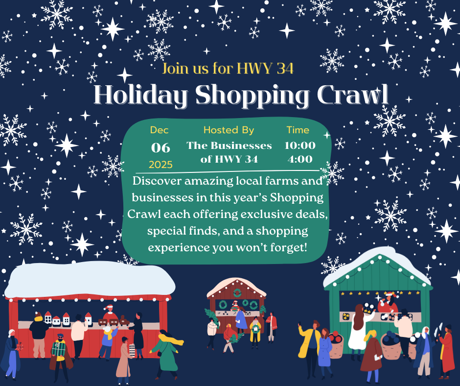 December 6 from 10am to 4pm for our HWY 34 Shopping Crawl.